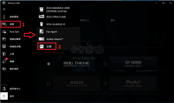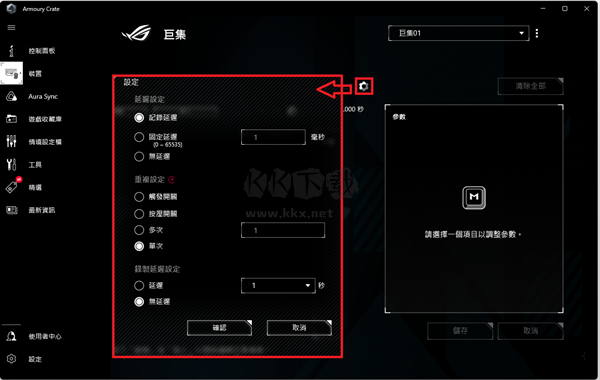2. 點(diǎn)擊Armoury Crate菜單[設(shè)備],點(diǎn)擊[宏],如下圖:
