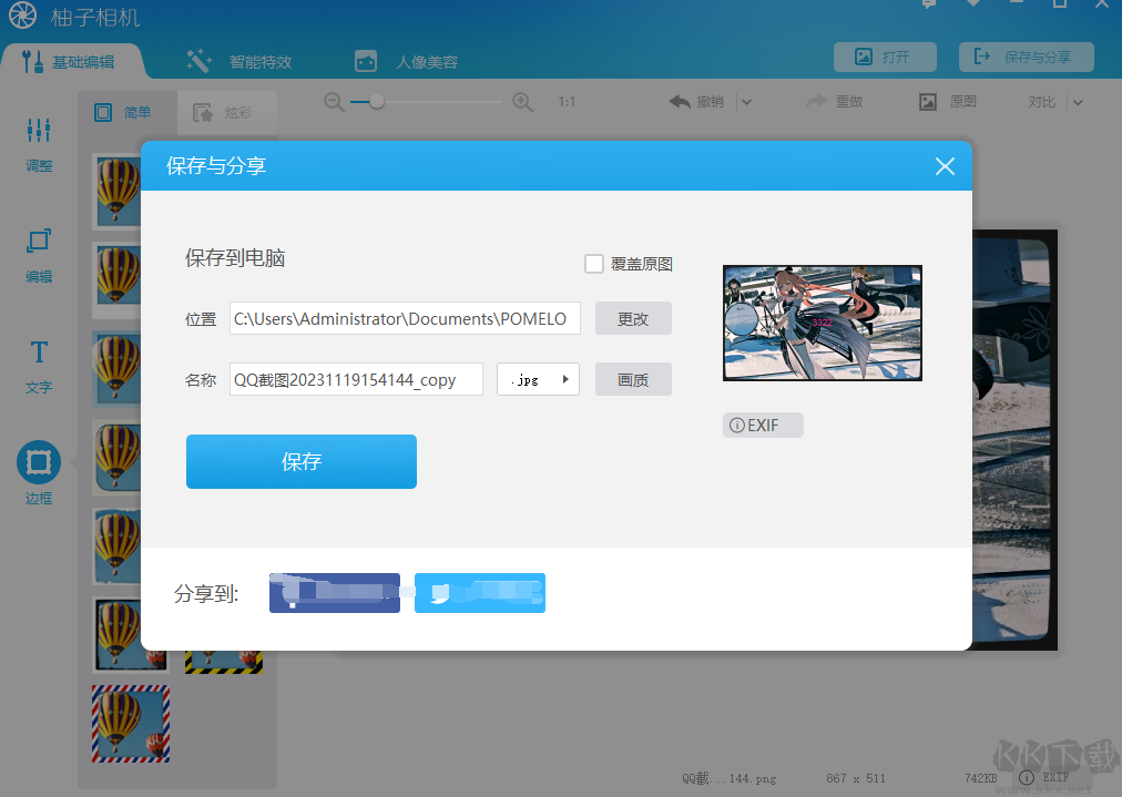 7、編輯完成之后點(diǎn)擊右上角的保存到文件夾即可。