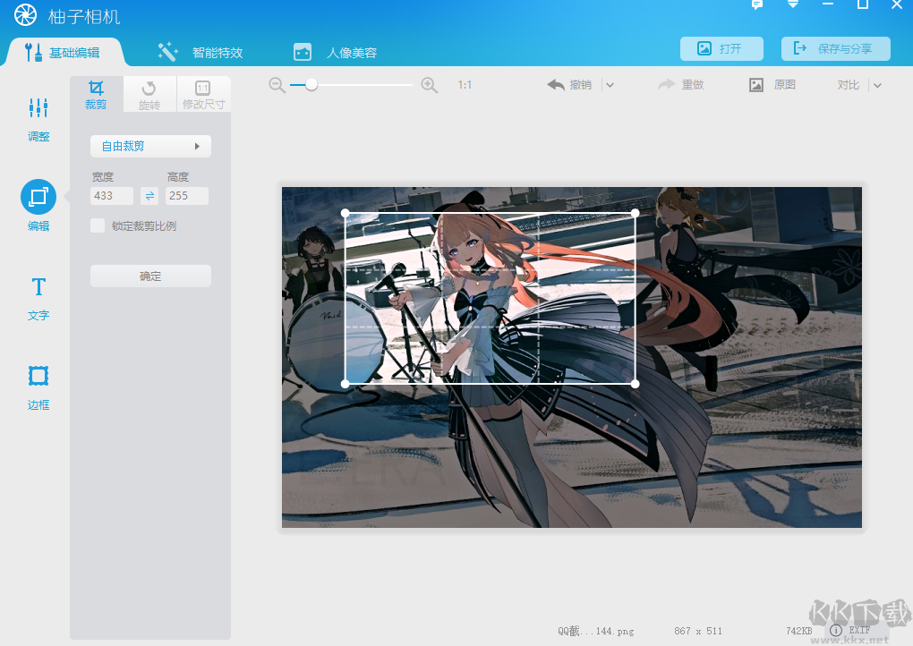 可以對(duì)照片、人像等圖片進(jìn)行基礎(chǔ)的修改。例如一鍵進(jìn)行美化、圖片的剪切以及添加文字、邊框等等