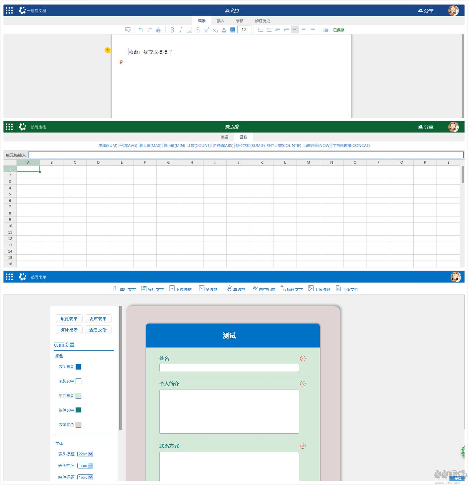 告別郵件、IM 發(fā)送 Office 文檔,一起寫提供多人實時在線編輯文檔、表格、演示文稿。