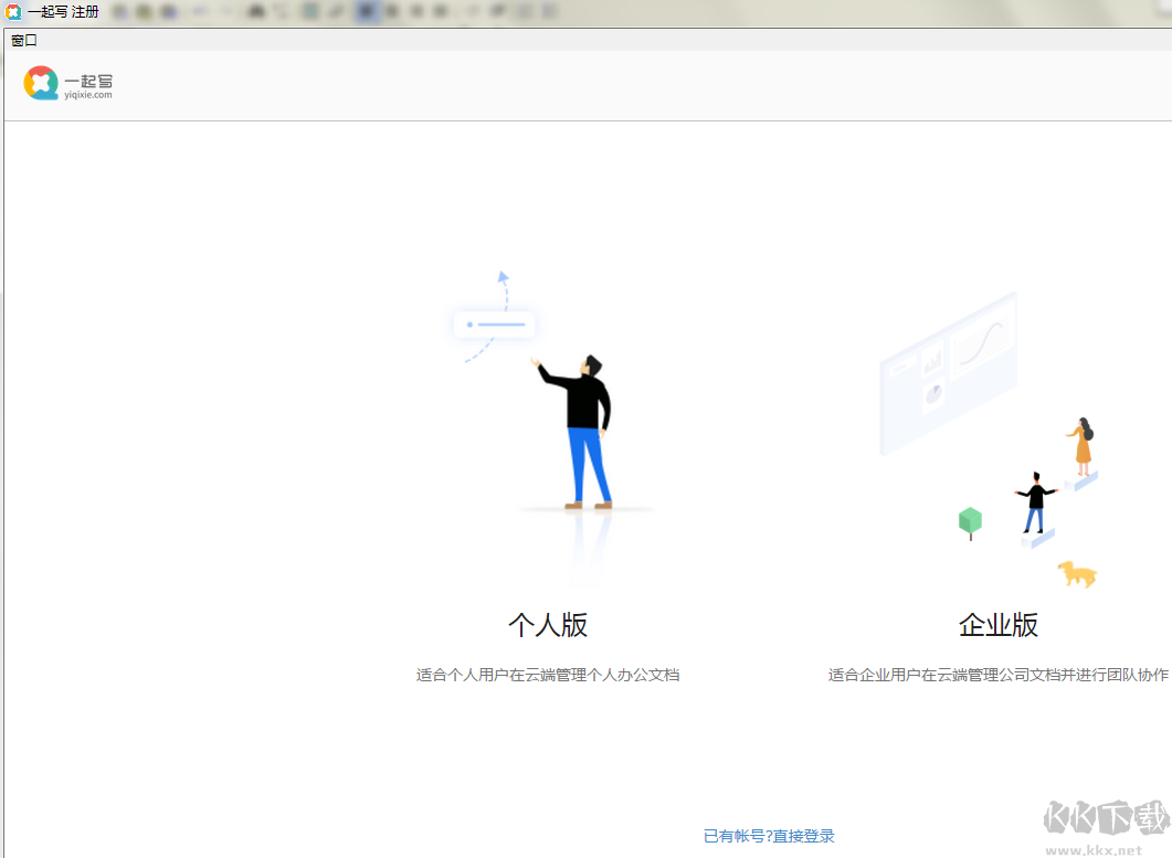 2、選擇后進(jìn)入到一起寫版本選擇界面,請選擇適合你的選項。如:一起寫個人版和一起寫企業(yè)版,個人版一般都是用戶個人在云端存儲的個人文檔等信息;企業(yè)版適合多人團(tuán)隊協(xié)作使用,可以同時容納多人同時使用。