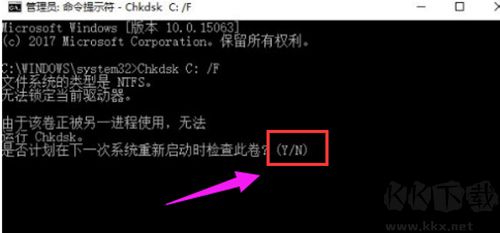 注意:若是使用Chkds工具修復(fù)C盤(系統(tǒng)盤)則可能會提示“是否計(jì)劃在下一次系統(tǒng)重新啟動時(shí)檢查此卷?(Y/N)”,我們輸入Y回車,然后保存當(dāng)前活動項(xiàng)目,再重啟一下。