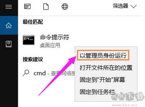 2.搜索CMD,在搜索結(jié)果中右擊CMD,然后選擇“以管理員身份運(yùn)行”。