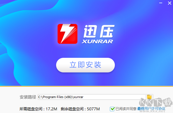 1.在kk網(wǎng)站下載迅壓官方包,雙擊打開,進(jìn)入軟件界面,點(diǎn)擊“立即安裝”