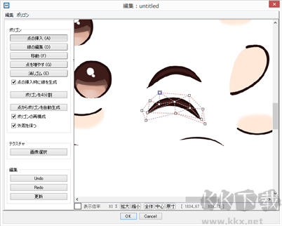 首先,從“睫毛”校正多邊形,“睫毛”是具有大量變形的部分。