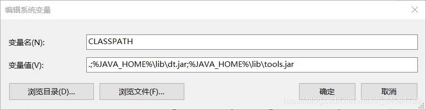 5.新建變量名:CLASSPATH? ,變量值: .;%JAVA_HOME%\lib\dt.jar;%JAVA_HOME%\lib\tools.jar