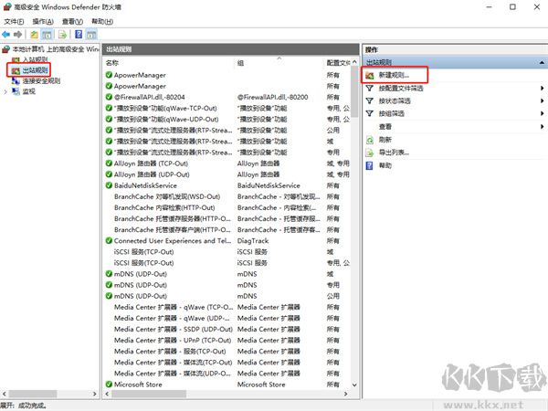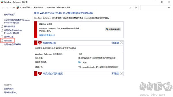 3、在防火墻設(shè)置里面點(diǎn)擊“高級(jí)設(shè)置”,之后在左邊的側(cè)欄里面選中“出站規(guī)則”;