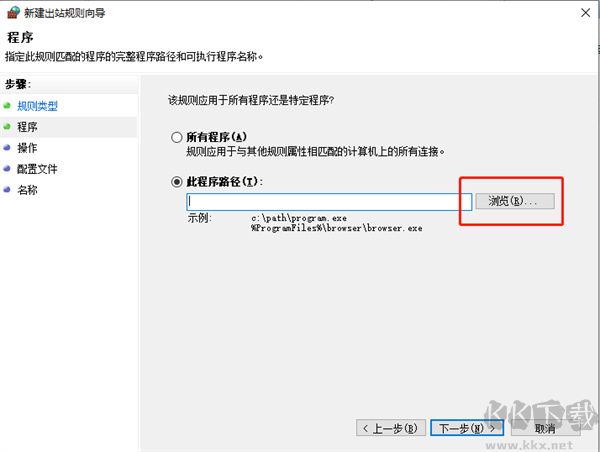 5、在新的窗口中選擇“此程序路徑”后點(diǎn)擊右邊的瀏覽,在C:ProgramFilesWinRAR找到“WinRAR.exe”這個(gè)程序后打開(kāi)它。然后在窗口中一直點(diǎn)擊下一步知道需要輸入名稱(chēng);