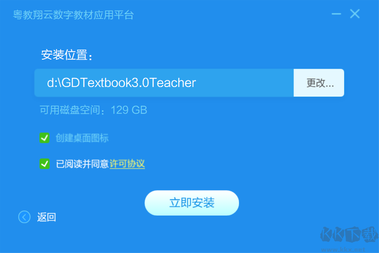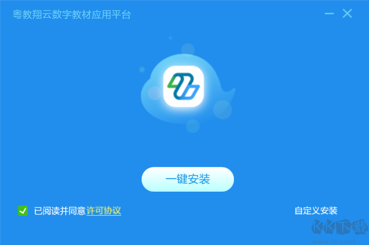 1.在kk軟件園下載粵教翔云數(shù)字教材應(yīng)用平臺(tái)官方版安裝包,雙擊exe程序,進(jìn)入安裝向?qū)?,點(diǎn)擊“自定義安裝”選擇安裝文件夾