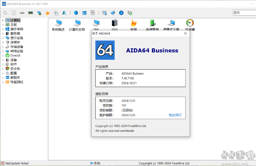 AIDA64 business是一款功能強(qiáng)大的軟硬件檢測(cè)工具,適用于各類用戶,從硬件高手到初級(jí)玩家都能從中受益。其提供了多項(xiàng)功能,幫助用戶超頻、硬件錯(cuò)誤診斷、壓力測(cè)試和傳感器監(jiān)控,具有獨(dú)特的功能來(lái)評(píng)估處理器、系統(tǒng)內(nèi)存、磁盤(pán)驅(qū)動(dòng)器和支持OpenCL的GPU的性能。