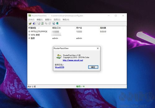 2、運(yùn)行RouterPassView之后,您可以通過使用“打開路由器配置文件”選項(xiàng)(Ctrl + O)或?qū)⑴渲梦募馁Y源管理器拖到來打開路由器配置文件。