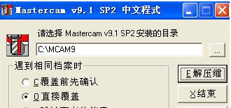 8、雙擊“mastercam_v9.1 crack解密”--選擇“iso-mc91.exe”--勾選好“make backup copy of patched files”--路徑選擇mastercam的安裝目錄“C:\Mcam9”--“一路next”即可。