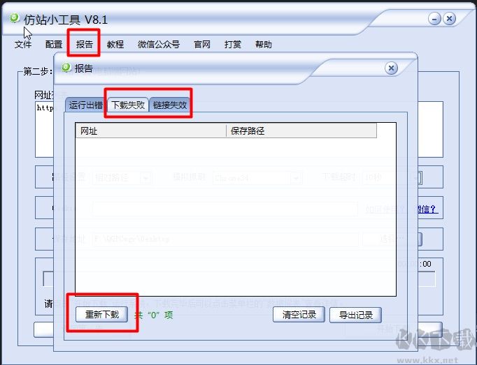 點(diǎn)擊菜單欄的“報告”,切換“下載失敗”和“鏈接失效”頁簽,點(diǎn)擊“重新下載”,系統(tǒng)重新嘗試下載。