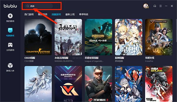 biubiu加速器pc版怎么搜索游戲