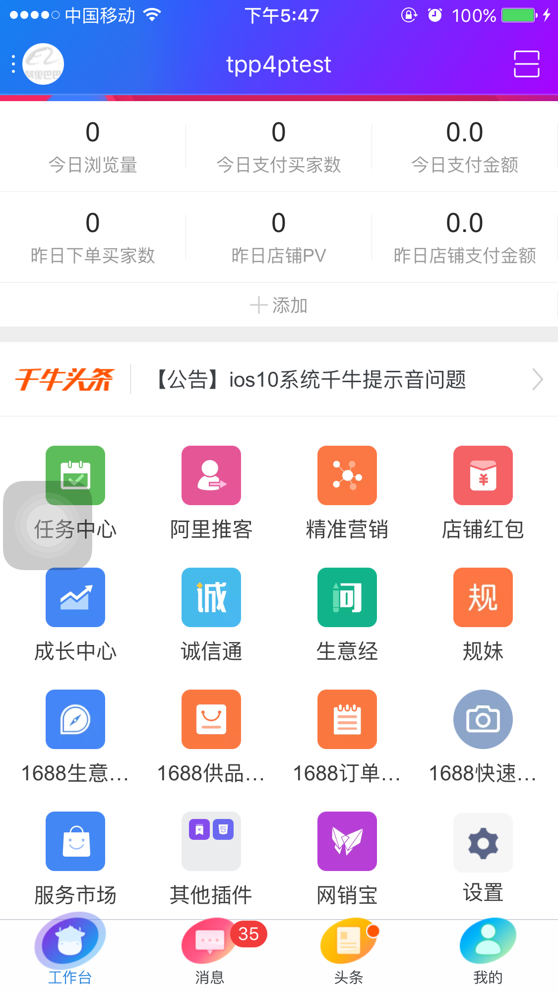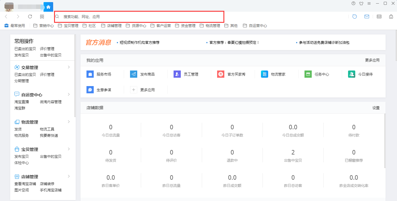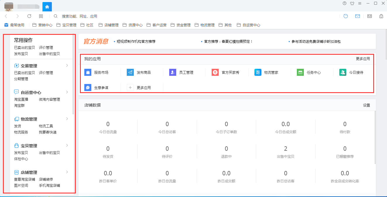 千牛主要包括寶貝管理、店鋪管理、貨源中心、營銷中心、其它5部分;