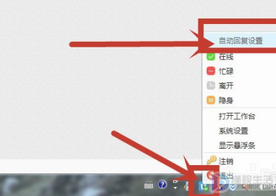 2、在電腦右下角,鼠標(biāo)放置千牛頭像上,點(diǎn)擊鼠標(biāo)右鍵,點(diǎn)擊【自動(dòng)回復(fù)設(shè)置】進(jìn)入