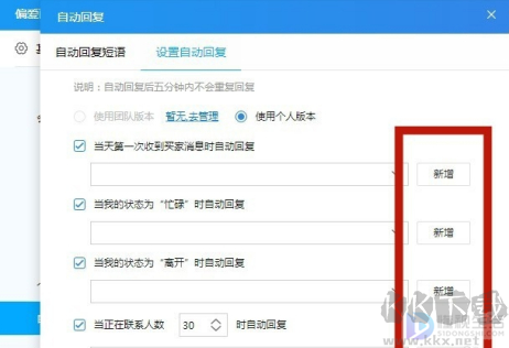 5、點(diǎn)擊后方【新增】輸入想要回復(fù)的內(nèi)容保存選擇即可
