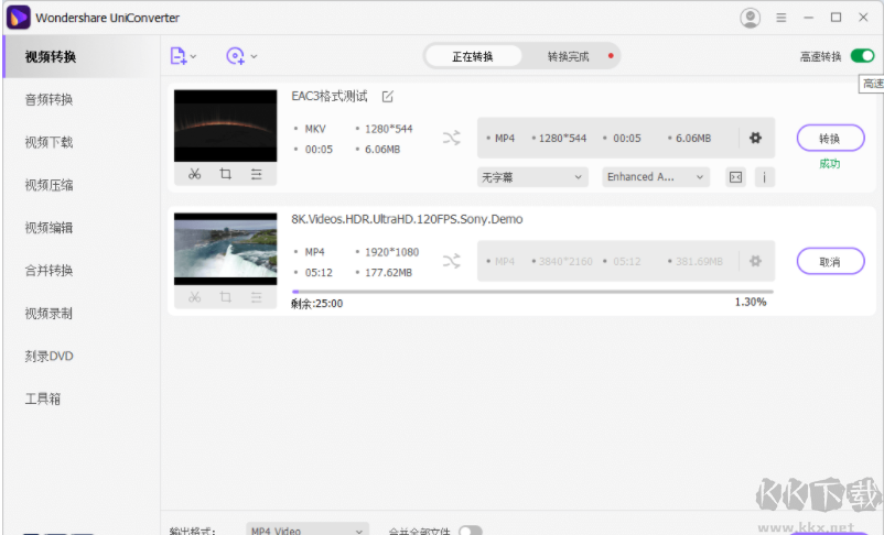 萬興優(yōu)轉(zhuǎn)電腦版是一款功能非常強(qiáng)大且非常好用的視頻格式轉(zhuǎn)換軟件,這款軟件的兼容性非常的強(qiáng)大,能夠支持用戶合并視頻,視頻壓縮,視頻編輯,視頻錄制等,并且轉(zhuǎn)換的過程也不會讓你的視頻丟失關(guān)鍵幀,使用起來簡單高效,感興趣或者有需要的小伙伴就快來kk網(wǎng)站下載體驗(yàn)一下吧。
