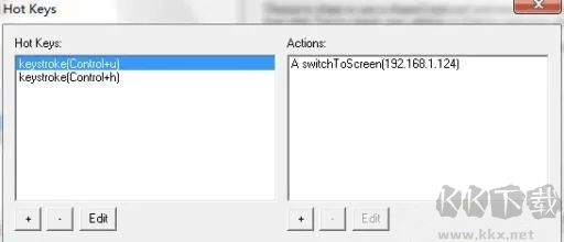 4、左邊添加快捷鍵,右邊添加對應的動作。這里 @scavin 設置 Ctrl + u 為切換到第二臺客戶端, Ctrl + h 為回到服務器端。當然你可以設置 Ctrl Shift + 1 到第一臺客戶端,Ctrl Shift+2到第二臺客戶端,點擊 OK 回到初始界面。點擊 Test,如果沒有出現(xiàn)錯誤提示,就可以點擊 stop 后,正式開始服務器端了。點擊 Start 開始共享