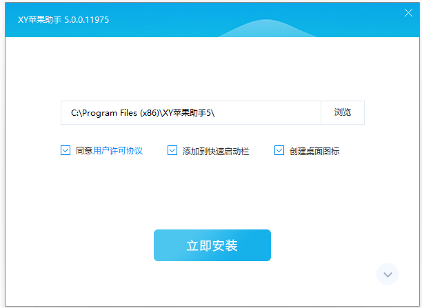 1、從本站下載XY蘋果手機(jī)助手,解壓壓縮包,雙擊.exe文件,彈出界面,點(diǎn)擊【自定義安裝】,