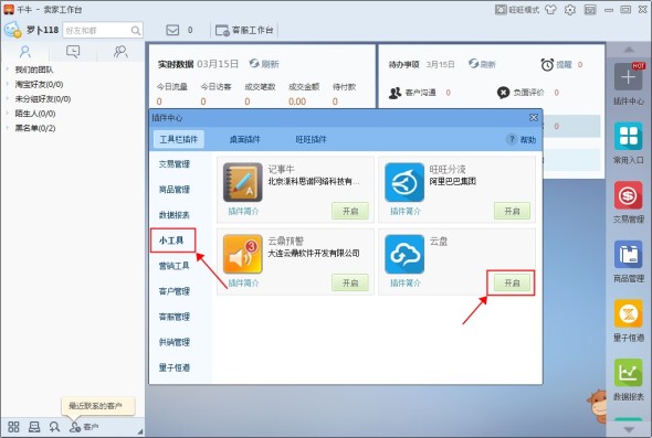 登陸千牛旺旺模式,點擊下方插件中心的千牛云盤