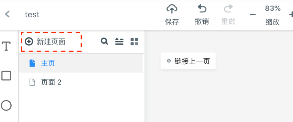 在編輯區(qū)左側(cè)的頁(yè)面列表區(qū)域,您可以點(diǎn)擊頂部的「新建頁(yè)面」為原型添加新頁(yè)面。