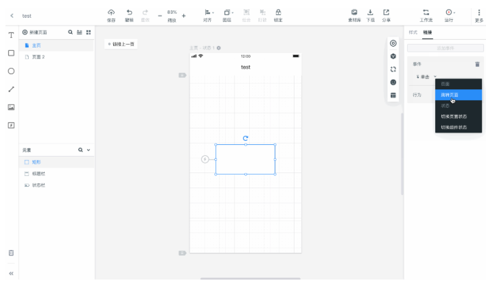 1、選中組件,拖拽組件旁邊的鏈接(小閃電)圖標(biāo),到您想要跳轉(zhuǎn)的頁(yè)面即可。