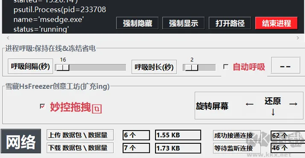 4、進(jìn)程自動(dòng)唿吸功能(網(wǎng)游黨の福音),可保持在線&省電兩不誤,特別適用于需要保持在線又未想掉線重連的情景。