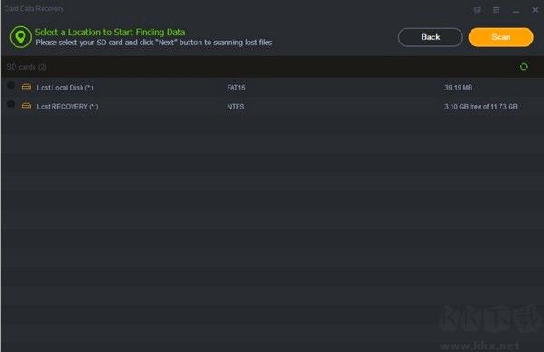將您的SD卡連接到計(jì)算機(jī);啟動(dòng)Shining Card Data Recovery軟件,單擊“開始”按鈕,與計(jì)算機(jī)相關(guān)的所有分區(qū)和驅(qū)動(dòng)程序?qū)@示在界面上。選擇丟失文件的SD卡,然后單擊“掃描”按鈕以搜索所有已刪除,丟失和現(xiàn)有的文件。