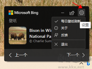 2、安裝后,可以在任務(wù)欄找到 Bing Wallpaper,它會(huì)常駐后來(lái),以實(shí)現(xiàn)自動(dòng)更換壁紙的功能。