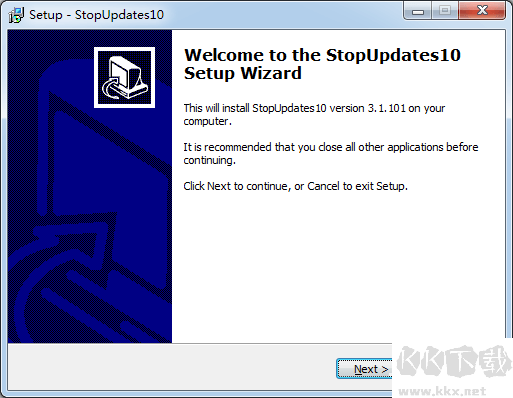 1、下載StopUpdates10軟件壓縮包,解壓,打開主程序文件夾中的stopupdates10setup.exe安裝程序,點擊下一步繼續(xù)安裝