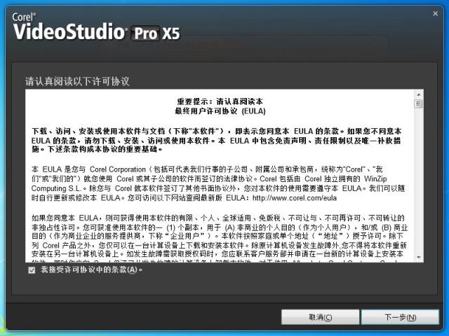 3.同意會(huì)聲會(huì)影用戶協(xié)議,點(diǎn)擊"下一步" 進(jìn)入安裝界面