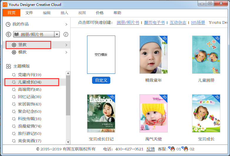 2、這里小編選擇豎款,其提供了多種模板供用戶選擇,選擇兒童成長www.sdyshb.cn