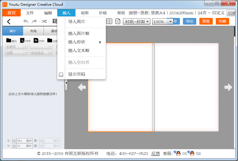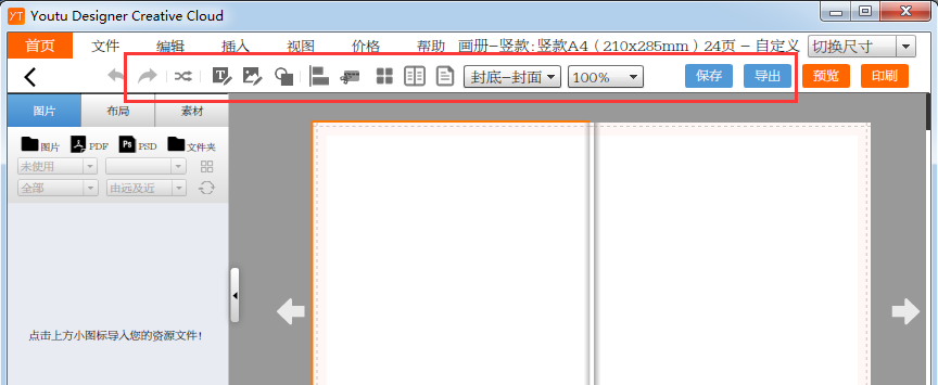 YoutuDesigner可讓你輕輕松松加上文本、圖片、圖型等內(nèi)容,讓你的有圖書以你要想的方法展現(xiàn)。如果你把圖片導(dǎo)進(jìn)進(jìn)去時,文圖的版式會依據(jù)您挑選的合理布局而轉(zhuǎn)變 。你乃至還能夠?qū)нM(jìn)PDF和psd文件,并在YoutuDesigner中開展編寫,使其日趨極致。