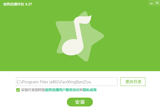 1.到本站下載安裝酷狗直播伴侶,打開安裝程序,點(diǎn)擊更改選擇軟件安裝位置,開始安裝