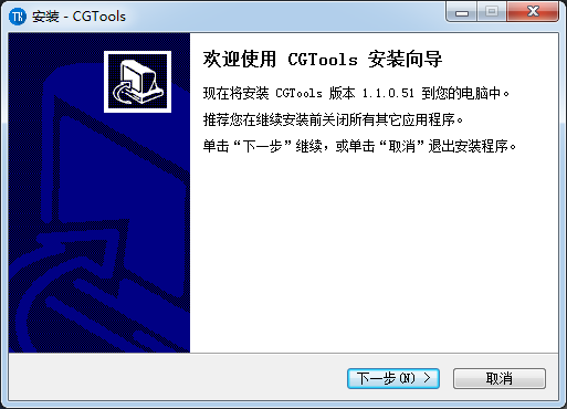 1.將kk下載分享的壓縮包先解壓出來(lái)得到CG工具箱安裝文件,打開(kāi)安裝程序,點(diǎn)擊下一步繼續(xù)安裝