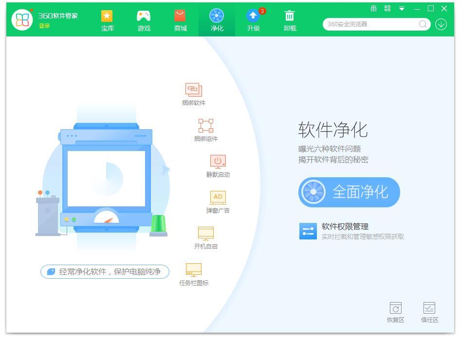 根據(jù)程度的不同,該功能劃分了問題嚴重區(qū)、問題輕微區(qū),將對應(yīng)的軟件分門別類,并給出是否需要凈化的建議。同時,用戶點擊對應(yīng)的軟件時,還可以看到更詳細的說明,相當專業(yè)、全面。