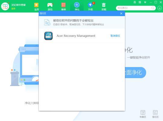 不想清理的軟件可以將其拉入到信任區(qū),信任區(qū)的軟件將不會被處理。