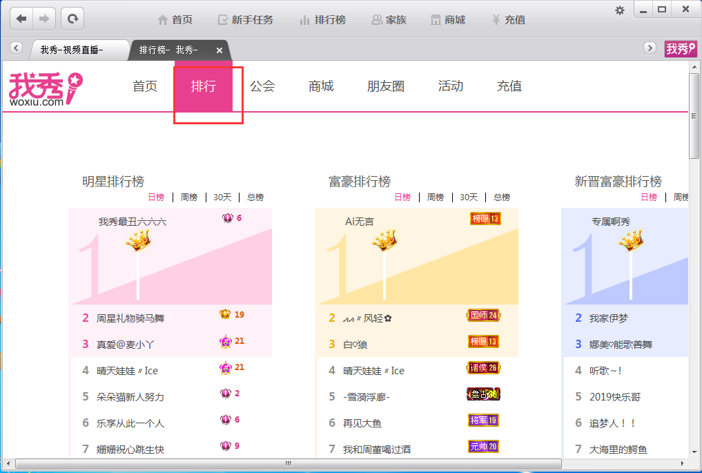 1、點(diǎn)擊排行榜—排行,我秀美女直播點(diǎn)擊最高的主播,打賞最高富豪在這里都有展示;