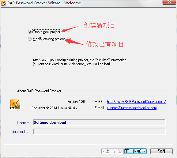 2.打開軟件后可選擇創(chuàng)建新項(xiàng)目,若選擇修改已有項(xiàng)目,一般選擇創(chuàng)建新項(xiàng)目,點(diǎn)擊“下一步”;