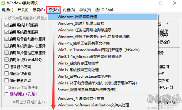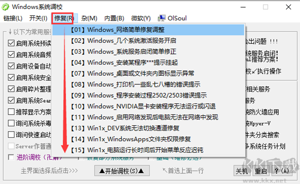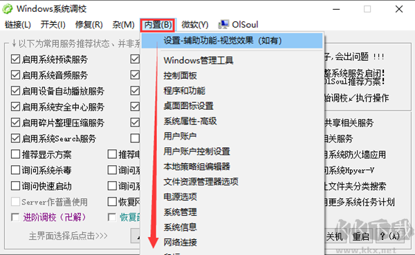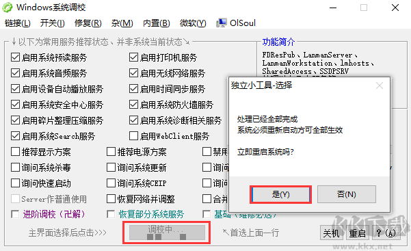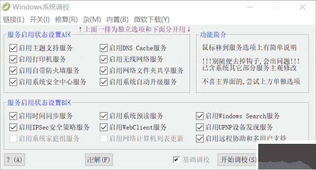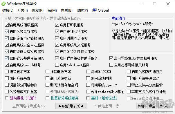2、雙擊運(yùn)行“Windows系統(tǒng)調(diào)校_*.exe”程序,啟動(dòng)后你將看到與系統(tǒng)相關(guān)的服務(wù)項(xiàng)目。