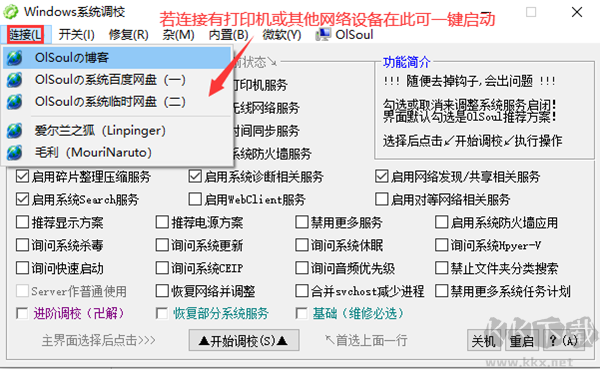 OlSoul(系統(tǒng)調(diào)校程序):一款專(zhuān)為Windows系統(tǒng)設(shè)計(jì)的全面系統(tǒng)調(diào)校工具,這款軟件有著非常清爽的界面,用戶(hù)能夠快速上手使用,軟件占用電腦內(nèi)存超級(jí)小,內(nèi)置了多達(dá)數(shù)十項(xiàng)實(shí)用功能,幫助用戶(hù)輕松管理和優(yōu)化系統(tǒng)設(shè)置。無(wú)論是啟用無(wú)線網(wǎng)絡(luò)功能、調(diào)整打印機(jī)設(shè)置,或者是快速進(jìn)入休眠狀態(tài),OlSoul都能高效完成。需要的朋友趕緊來(lái)試試吧~