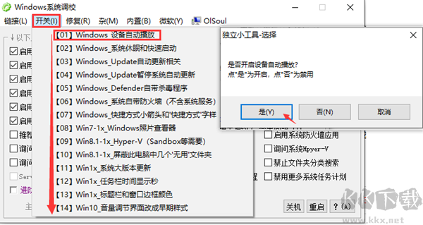 5、你可以輕松控制系統(tǒng)設(shè)置,如啟用光驅(qū)自動(dòng)播放、內(nèi)存壓縮技術(shù)、自動(dòng)更新補(bǔ)丁,以及快速啟動(dòng)與休眠。只需點(diǎn)擊“是”,然后重啟電腦即可激活這些功能。