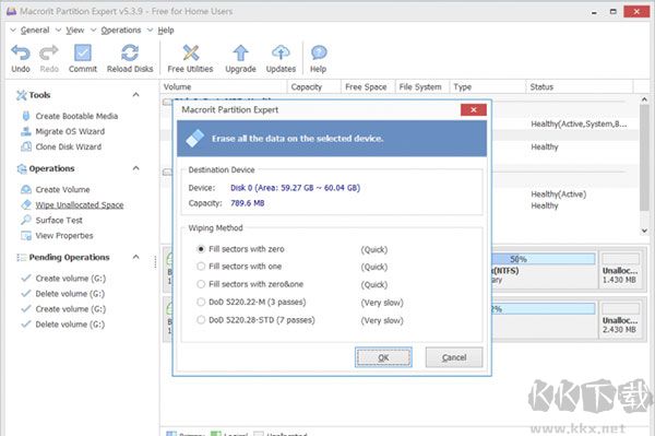 – 擦除分區(qū):永久擦除目標分區(qū)上的數(shù)據(jù),防止通過任何數(shù)據(jù)恢復工具進行恢復