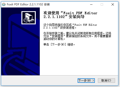 1.下載Foxit PDF Editor,解壓壓縮包,雙擊.exe文件,彈出界面,根據(jù)向導操作;