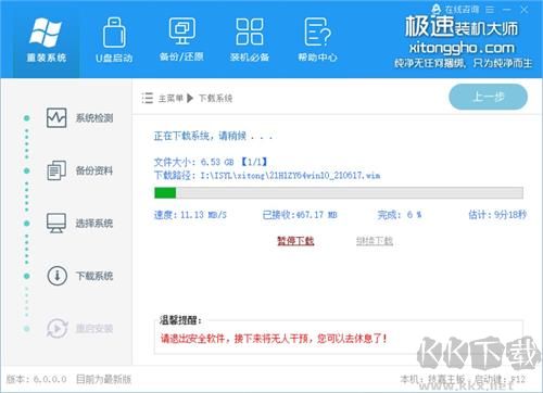 4、下載系統(tǒng):全自動高速下載,到了這一步時用戶即可離開電腦,程序會全自動完成重裝步驟。