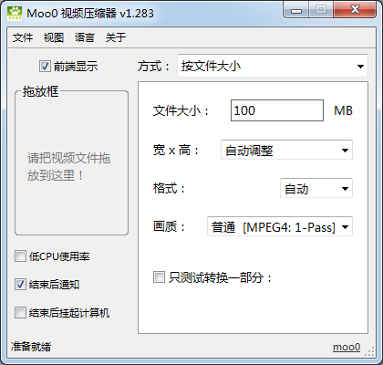Moo0視頻壓縮器支持文件大小設(shè)置,可以規(guī)定壓縮文件的大小