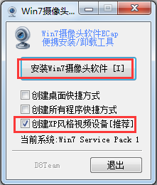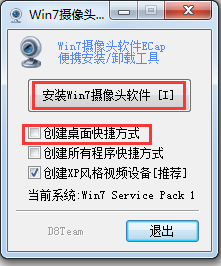 1、打開軟件,勾選創(chuàng)建所以程序快捷方式,點安裝Win7攝像頭軟件[I]即可!