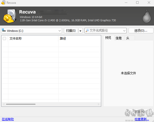 Recuva電腦版是一款非常好用的數(shù)據(jù)恢復(fù)軟件,這款軟件的功能非常的強(qiáng)大,用戶(hù)能夠利用這款軟件輕松的恢復(fù)任意格式的文件數(shù)據(jù),涵蓋了圖片,音樂(lè),視頻等,操作起來(lái)也非常的方便靈活,滿(mǎn)足不同用戶(hù)的使用需求,感興趣或者有需要的小伙伴就快來(lái)kk網(wǎng)站下載體驗(yàn)一下吧。