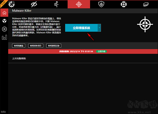6、Malware Killer是惡意軟件查殺功能,點擊立即掃描系統(tǒng)就可以分析電腦上的惡意病毒。